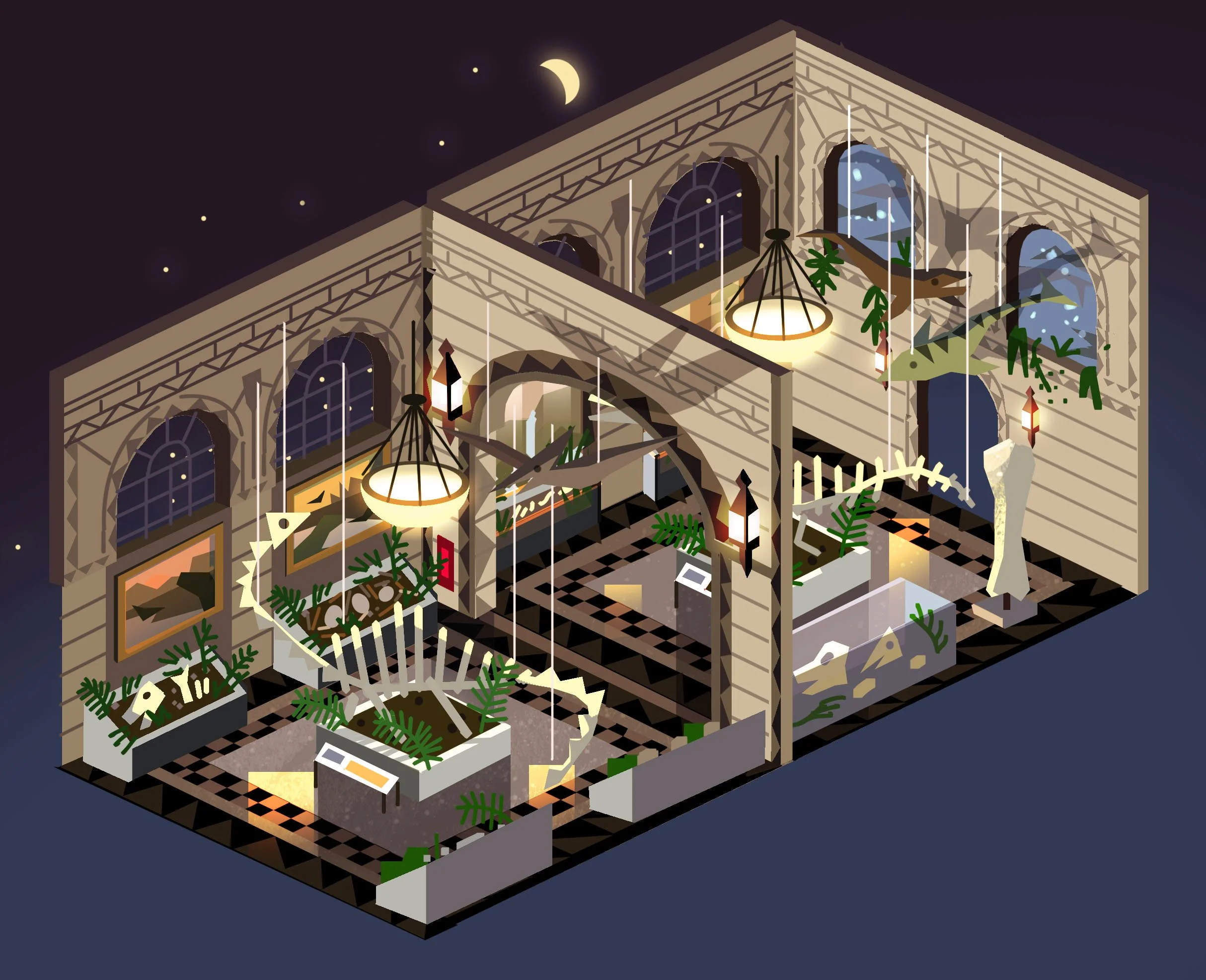 Art direction for AR game, “Sinclair Snake”. Concept art paintings, layouts for each museum room, and prop designs to visually showcase how 3D assets would be modeled for elevated user experience. Created in conjunction with Within for their Wonderscope platform, the story follows a sneaky yet knowledgable snake that hides in a museum and shares interesting historical facts before he runs off to his next hiding spot.